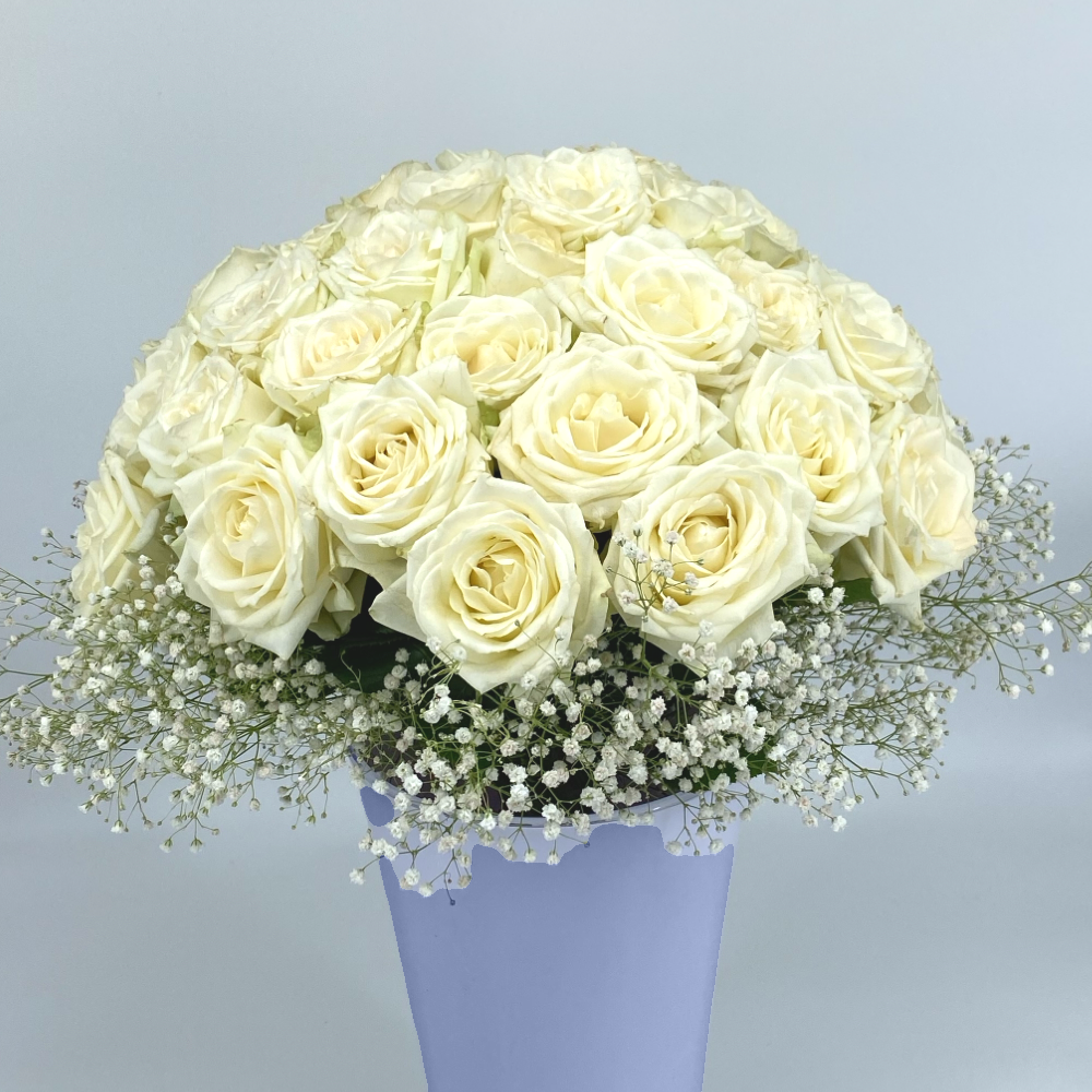 Ein zeitlos schönes Arrangement aus edlen weißen Rosen, umspielt von feinem Schleierkraut. Die schlichte Farbkombination strahlt Reinheit, Eleganz und Harmonie aus – perfekt für feierliche Anlässe, als stilvolles Geschenk oder als Ausdruck von Wertschätzung und Erinnerung.