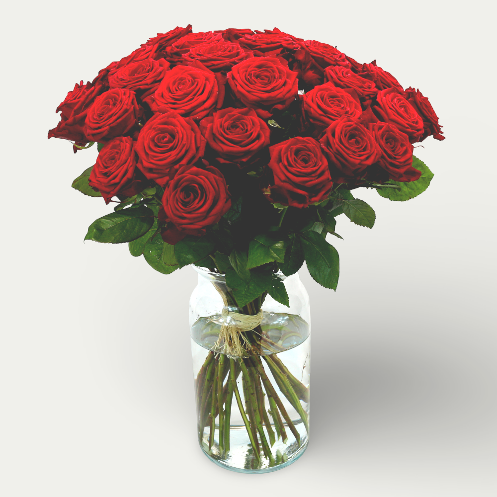 Ein klassischer Strauß aus tiefroten Rosen – Symbol für Liebe, Leidenschaft und Eleganz. Mit ihrer satten Farbe und der üppigen Blütenfülle ist dieses Arrangement der perfekte Ausdruck inniger Gefühle und ein zeitloser Klassiker für romantische Anlässe.